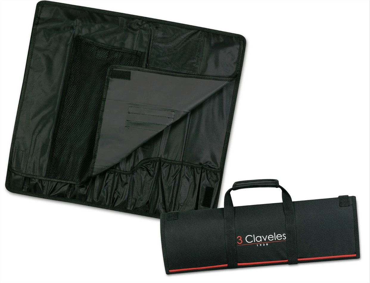 This roll bag is perfect for storing and carrying your knives wherever you, thus it is ideal for professional knives that travel frequently. The dimensions of this bag are the following: 54 x 50 cm (when open) and 50 x 16.5 cm (when closed). The items that come inside of it are listed below: