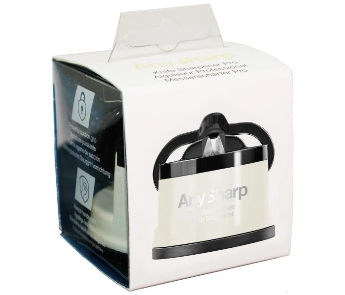 Furthermore, the AnySharp sharpener has a PowerGrip suction base cup that allows the sharpener to be securely attached to any smooth worktop in your kitchen. With the sharpener firmly attached to the surface of the worktop, you will only need to use one hand to sharpen your knife, because there will not by any need to use the other hand to hold the sharpener.