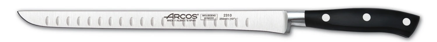 If you want to appreciate the quality from the products from this range, you can start by getting the Arcos Riviera Ham knife 26 cm. In fact, this is the perfect knife for cutting precise slices of ham thanks to its hollow edge blade that helps minimizing the friction and stickiness between the ham and the blade.