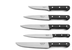 That is why the knife set in this page is a smart investment for your kitchen. It contains a complete set of knives that will enable you to work with all types of food ingredients. This set is ideal for both professional and home cooks. Find below the content found in this set: